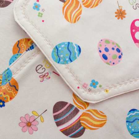 Подложките са двулицеви. От едната страна в разцветка на шарени яйца – подходяща за Великден, а от другата с лавандула в провансалски стил, която може да се ползва целогодишно или специално за Цветница.