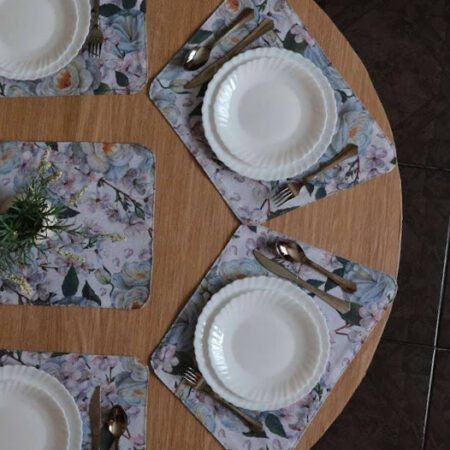• Кръгла маса аранжирана с трапецовидни подложки за хранене