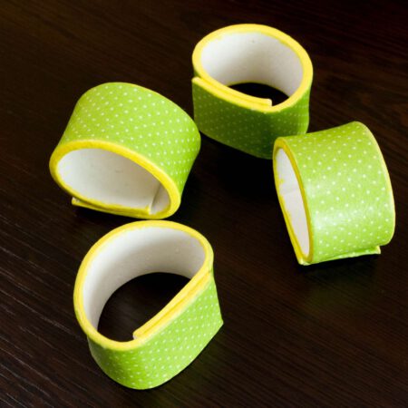 За перфектен завършек са добавени 4 ринга за салфетките в разцветка зелено на бели точки и жълт акцент по края.