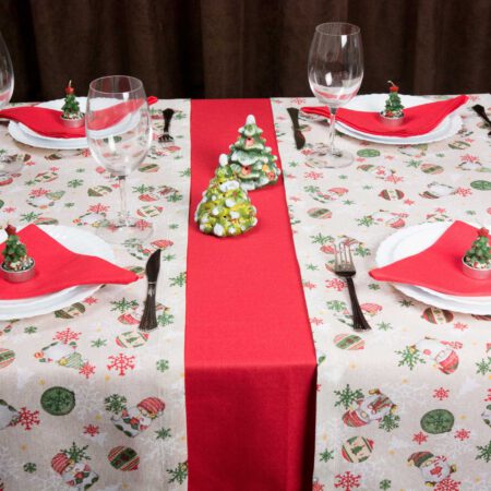 Червена покривка за правоъгълна маса в семеен размер. Изработена от фин плат 100% памук с произход Турция.