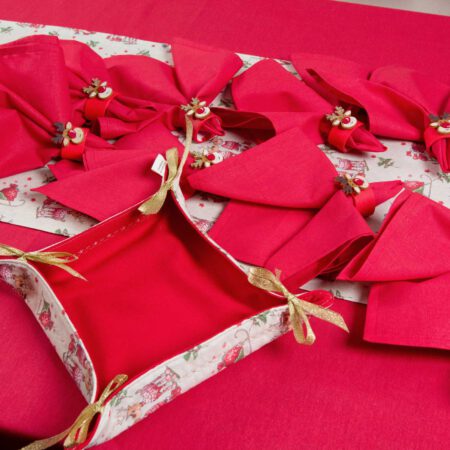 комплект от червена покривка и салфетки и коледни тишлайфери